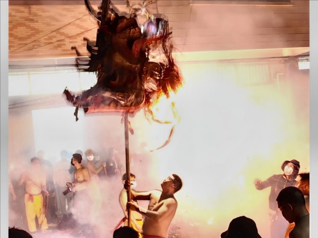(舞龙者舞龙瞬间)